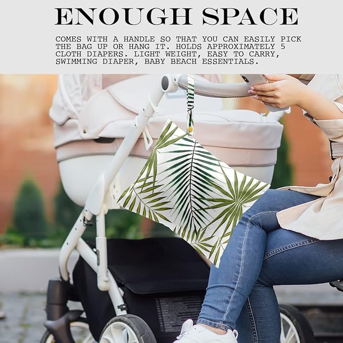 Wet Bag, Wet Dry Bag, Wet Bag for Swimsuit, Travel, Beach, Pool, Diapers, Dirty Yoga Gym Clothes, Makeup Bag, Waterproof Tropical Palm Leaves Decor Jungle Palm Leaf Favors