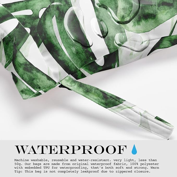 • WATERPROOF - Machine washable, reusable and water-resistant. very light, less than 50g. Our bags are made from original waterproof fabric, 100% polyester with embedded TPU for waterproofing, that’s both soft and strong. Warm Tip: This bag is not completely leakproof due to zippered closure.