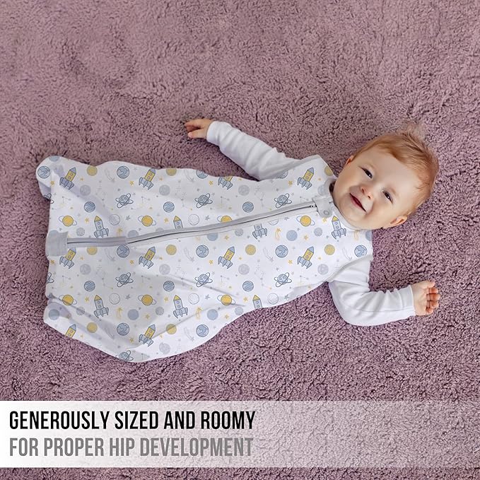 • 【BABY FRIENDLY, PROVIDES SAFE & SECURE SLUMBER】— Rest easy while your child is sleeping soundly without any loose blankets that could tangle or twist. Our wearable blankets 0-6 months provide your child a safe & comfortable sleeping experience. It has a safety tab that guards your baby's tender neck & chin. Our wearable blanket toddler sleep sack has a bottom zipper cover that deters your baby's hands from unzipping the blanket, ensuring a safe & uninterrupted slumber.