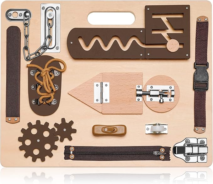 - Perfect Gifts for Your Little Boys and Girls: Let’s enjoy the time with your family by using our Montessori busy board that full of challenges and can keep your kid interested. A great gift choice for birthdays, Christmas, holidays, family gatherings, Children's Day, carnival prize and contest presents to your preschoolers. Ideal board for developing creative and critical thinking through playing, also enhancing children's dignity and confidence by solving problems.