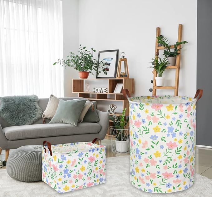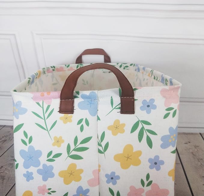 - ADVANTAGE OF DESIGN:1.Practical design: flower print baby girl basket stands when in use and can be folded for space saving and easy storage when you do not want to use it at the time.2.Reinforced handles: kids toy basket has handles on both sides, which is easy to carry.