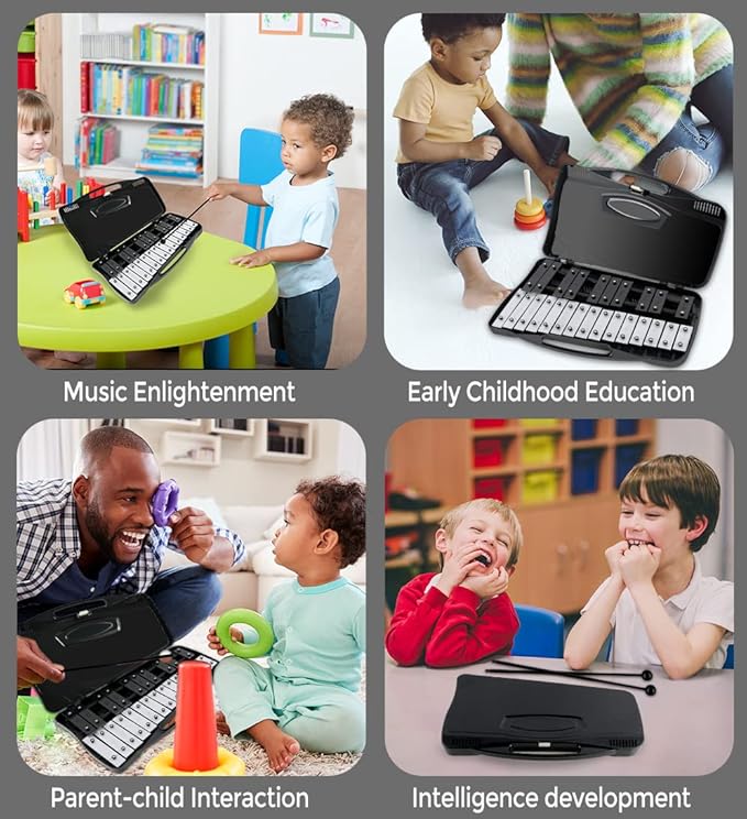 - Friendly Design - Glockenspiel is specially design for children, sound blocks with perfect tuning, Each of the 25 sound bars is elaborately made.