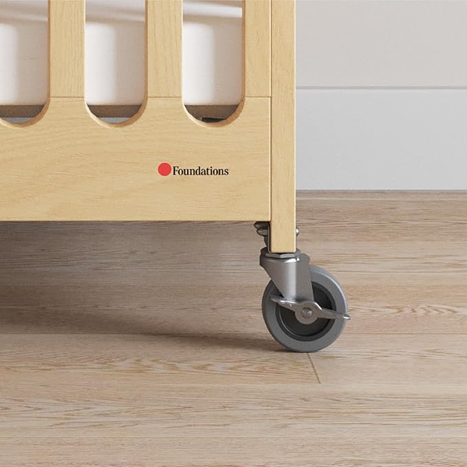 Foundations Boutique Folding Mini Baby Crib - Compact, Portable, Wooden Hotel Crib, Foldable Mini Cribs for Baby & Toddlers - Includes 3" Foam Mattress - Natural