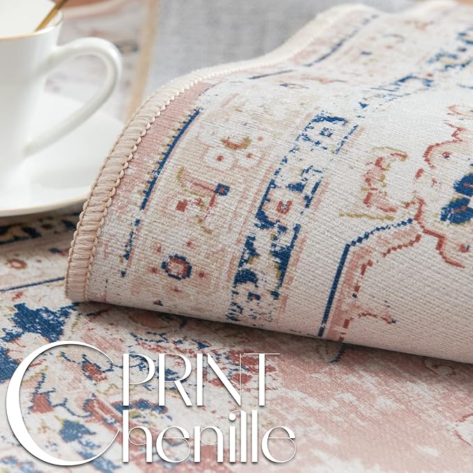 jinchan Hallway Runner Rug 3x8 Machine Washable Runner Rug Pink Vintage Floral Design Non-Slip Low Pile Ultra-Thin for Kitchen Laundry Room Bedroom Farmhouse (3‘x8',Pink)
