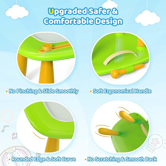 - Sturdy Drawing Table or Doodle Board: Designed with a durable screw-on system and premium legs, this drawing board is built to handle heavy use without a hint of wobbling or risk of breakage. Plus, the table’s legs are easily detachable and adjustable in three different heights, offering the perfect fit for your little artist’s comfort. Let their creativity flow with a stable, flexible setup that grows with them—ideal for endless hours of drawing fun!