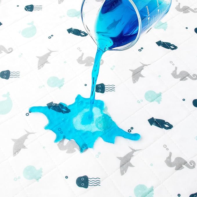 - Machine Washable & Cute: Machine washable on gentle cycle. Tumble dry on low heat or line dry. SPRINGSPIRIT’s waterproof crib mattress protector portable features blue ocean inspired by vigorous and adorable pattern, which brings friendship with nature to infuse your baby with curiosity and exploration.