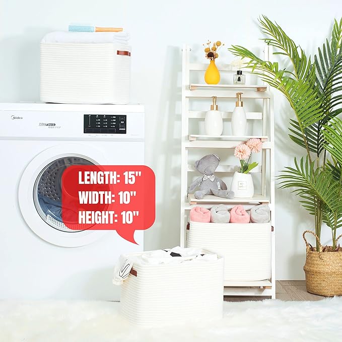 MINTWOOD Design 3-Pack Decorative Woven Storage Baskets for Shelves, Cube Bin Box for Organizing Books, Shoes, Dog Toys, Pantry Closet and Living Room Organizer, Creamy White