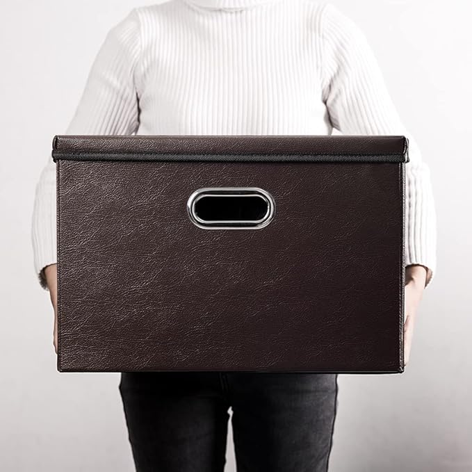 - 【Fashionable Bins】Designed to match interior decor and style in any room in the home or office. Enjoy the relaxing ambiance of the soft Brown neutral color scheme.