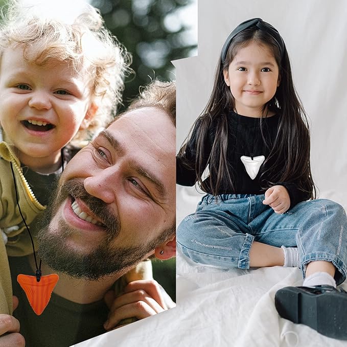 - ★ EASY TO CLEAN - Shark tooth sensory chew necklace is easy to clean in the dishwasher or by hand wash / rinse with just water. Freezer safe, these sensory necklaces can be a perfect gift for kids with sensory needs.