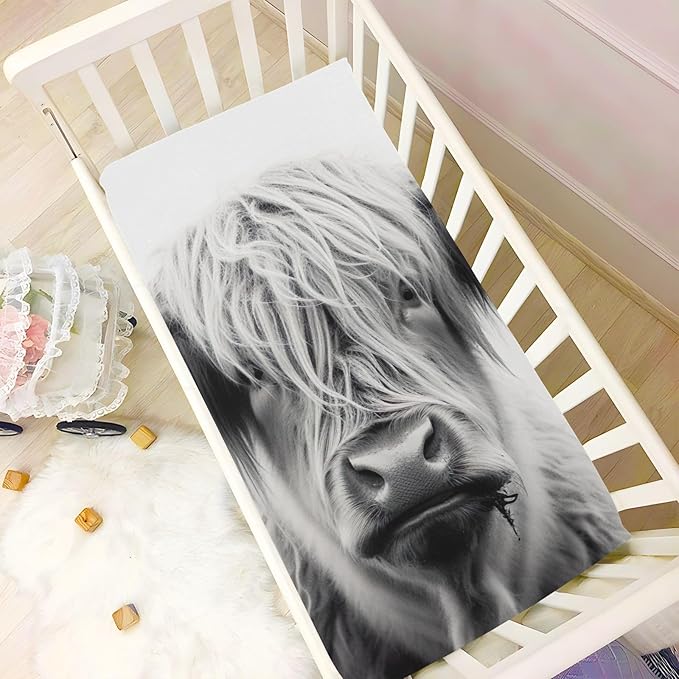 Highland Cow Crib Sheets for Boys and Girls, Fitted Baby Crib Sheets Soft and Breathable Mini Crib Sheets 52 X 28 Inches