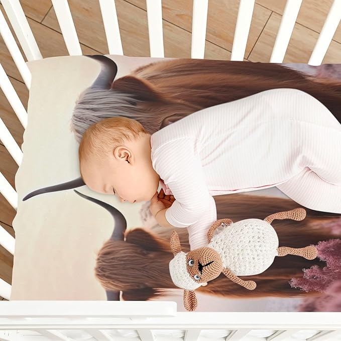 Two Highland Cows Crib Sheets for Boys and Girls, Fitted Baby Crib Sheets Soft and Breathable Mini Crib Sheets 52 X 28 X 9 Inches