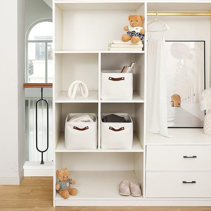 - Multipurpose Closet Storage Bins – A smart choice for keeping your life neat and organized these storage bins for shelves and closet spaces can be used for clothes, kid’s toys, nursery room items, extra linens, laundry, towels, sheets, and more.