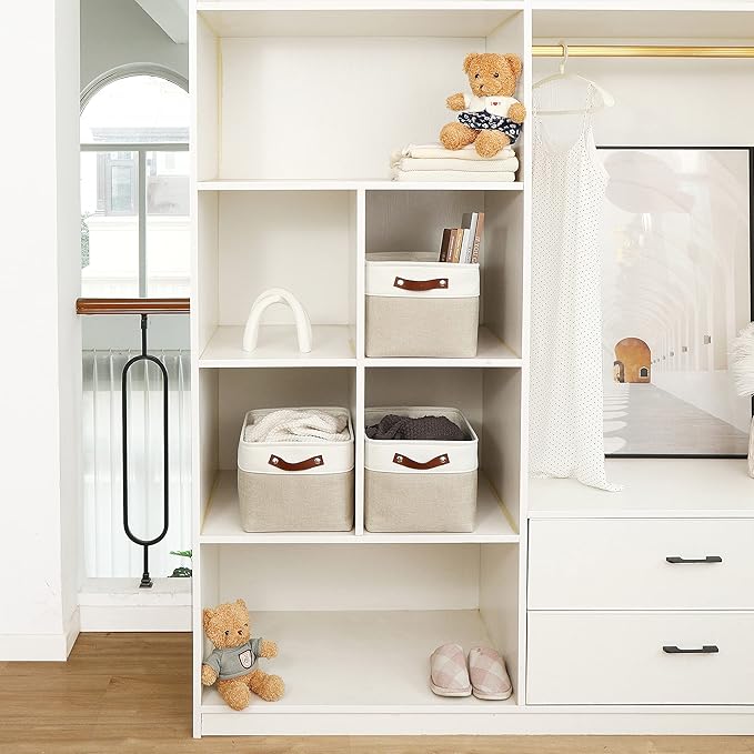 - Multipurpose Closet Storage Bins – A smart choice for keeping your life neat and organized these storage bins for shelves and closet spaces can be used for clothes, kid’s toys, nursery room items, extra linens, laundry, towels, sheets, and more.