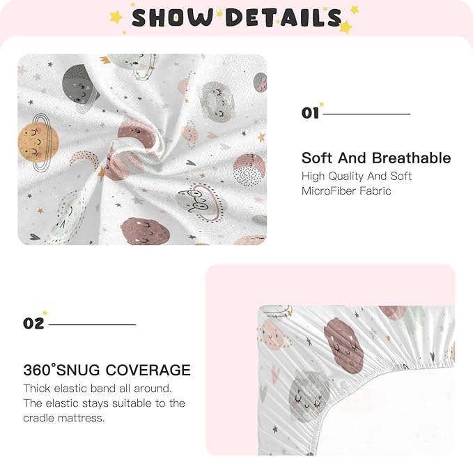 Galaxy Space Planets Crib Sheets for Boys and Girls, Fitted Baby Crib Sheets Soft and Breathable Mini Crib Sheets 52 X 28 Inches