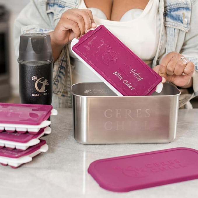 CERES CHILL The Milkstache Luxe Reusable Breastmilk Freezer Storage Container - 1/2 Ounce Cubes fit Any Baby Bottle, Freezing Pumped Milk has Never Been Easier (Stainless Steel), 1 Count