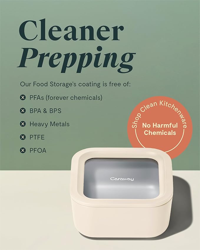 - BEAUTIFULLY DESIGNED: The cleanest, best-looking approach to storing your food. Our glass container features a clear glass lid for easy viewing Each container comes in modern colors that will match with your entire Caraway collection.