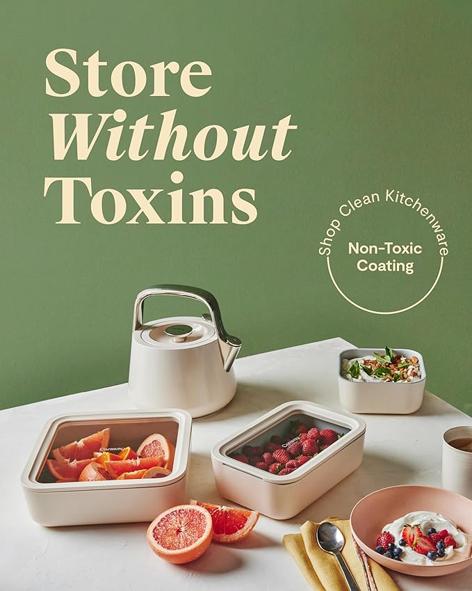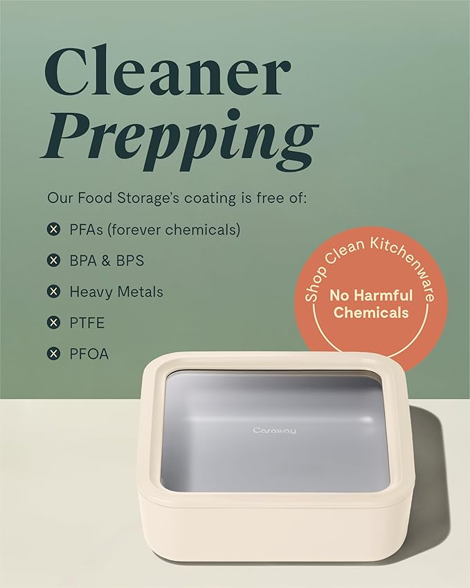 - BEAUTIFULLY DESIGNED: The cleanest, best-looking approach to storing your food. Our glass container features a clear glass lid for easy viewing Each container comes in modern colors that will match with your entire Caraway collection.