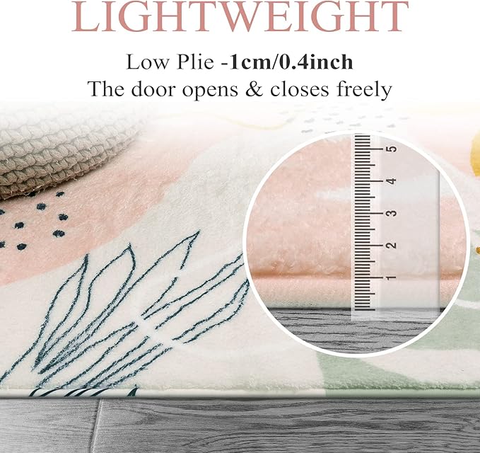 Lahome Pink Washable Entryway Rugs Indoor - 2x3 Small Non-Slip Kitchen Rug Soft Throw Rugs for Bedroom Girls Boho Botanical Print Floor Doormat Carpet for Bathroom Laundry Room Living Room Kids Room