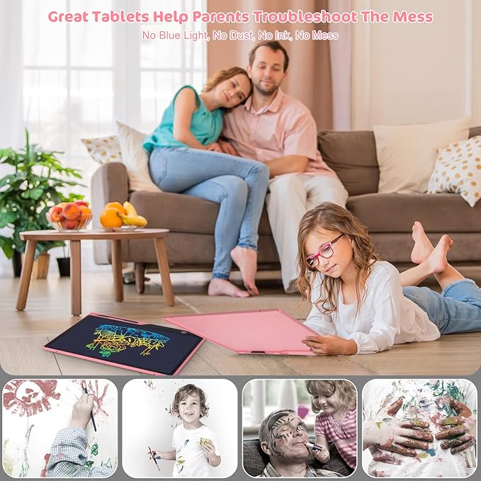 LCD Writing Tablet,16 Inch Colorful Screen Rechargeable Doodle Board Toddler Educational Toys for 3 4 5 6 Years Old Boys Girls Reusable Portable Drawing Tablet Christmas Toys Gifts for Kids (Pink)