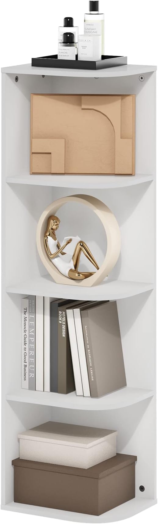 Furinno Pasir 4-Tier Corner Open Shelf Bookcase, White