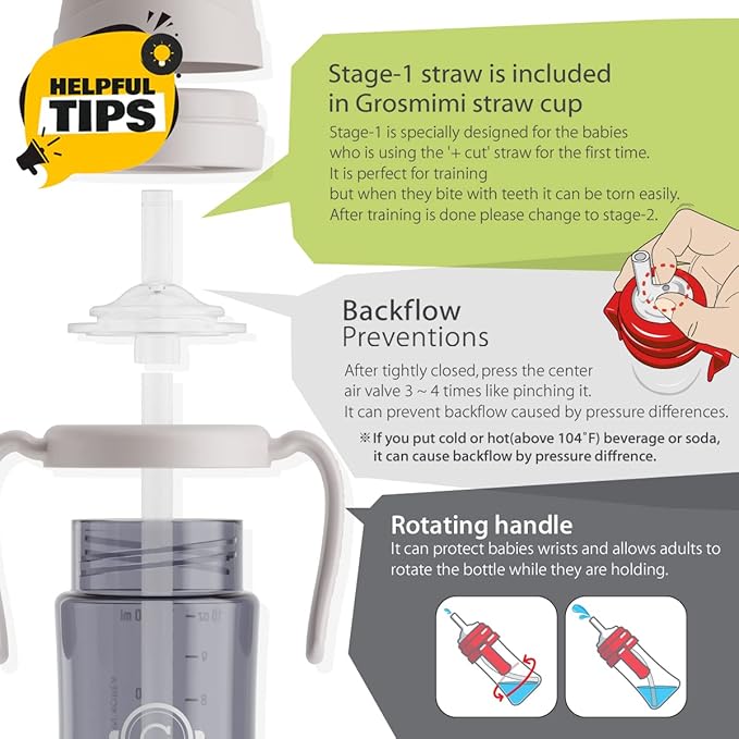 GROSMIMI Spill Proof no Spill Magic Sippy Cup with Straw with Handle for Baby and Toddlers, Customizable, PPSU, BPA Free 6 oz (Butter)