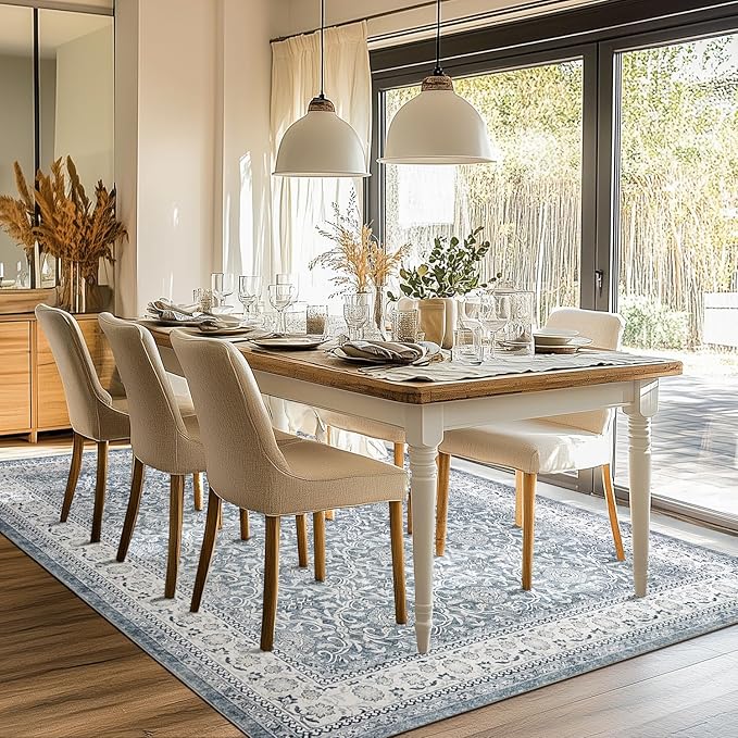 jinchan Floral 8x10 Area Rugs for Living Room - Machine Washable Vintage Distressed Boho Design Throw Rug Stain Resistant Carpet Low-Pile Thin Non-Slip for Bedroom Dining Room Nursery (8‘x10',Grey)