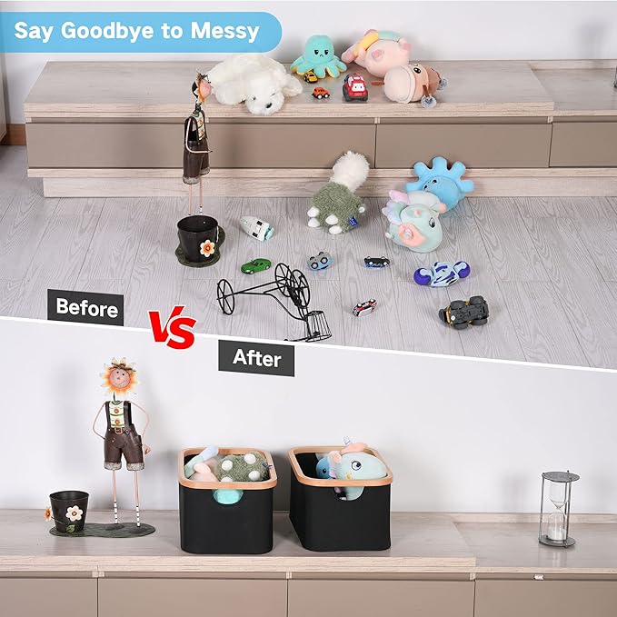 - 【Stylish Appearance】The neutral color and bamboo frame give the fabric storage bins a simple and elegant look. It will look great in the bedroom, bathroom or living room. When you don't know what to give as a gift, it will be a great idea.