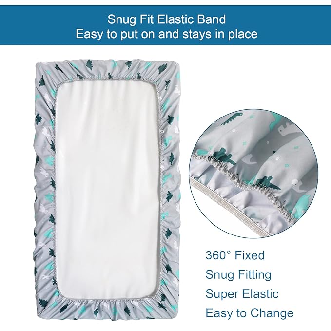Mini Crib Sheets Set, 4 Pack - Portable Sheets (38" X 24") | Multiuse for Pack n Play, Playard, Playpen, Crib - Dinosaurs