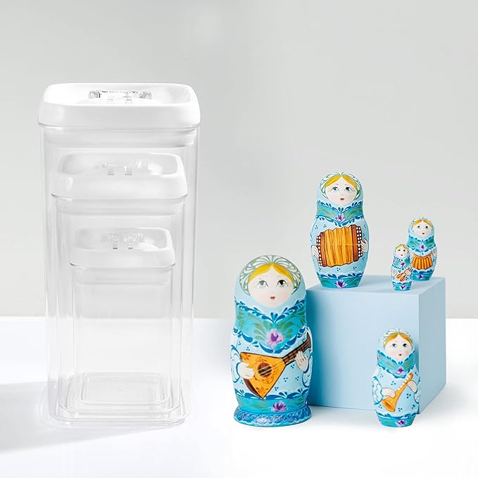- SPACE-SAVING: Nestable containers offer efficient storage by fitting inside one another when not in use, conserving essential cupboard or pantry space. Additionally, canisters of the same size stack securely, optimizing vertical storage.
