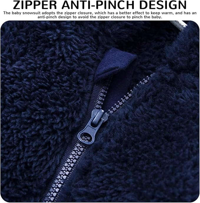 - ❤♥Design: Baby fleece snowsuit jacket warm one-piece jacket, full-cover zipper design to protect the baby from harm, one pull to the end, it is convenient for the baby to change diapers, the flip-up gloves can keep the baby warm and energetic at the same time, the bear ear one-piece cap makes the baby Avoid cold winds outdoors while increasing your baby's charm.