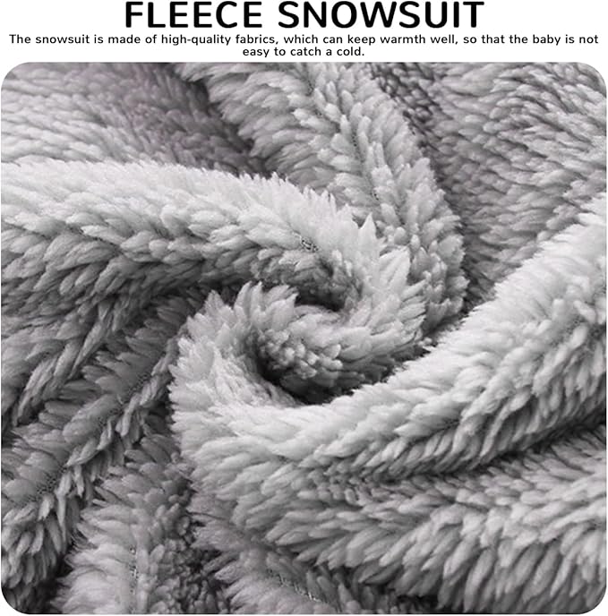 - ❤♥Material: This baby snow suit flannel jacket clothes made of high quality polyester fiber, double lining, fine polyester fiber cares for baby's delicate skin. The newborn winter fleece outfit hoodie whole body jumpsuit design, keeps the baby's head and ears inside and warm when outing. The toddler boys & girls snow suit accompanies the baby through the cold winter.