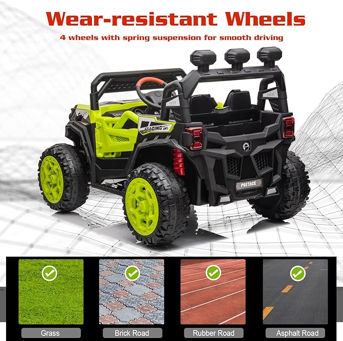 - 2 DRIVING MODES- Your kids can manually drive the ride on car by steering wheel and pedal to enjoy an independent off-road adventure! If your kid is too young to drive, the 2.8GHz parent remote control mode allow you to control the car to avoid potential dangers.