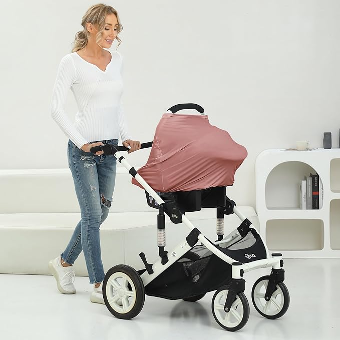 Breathable Car Seat Cover for Babies – Multi-Purpose Soft Rayon Nursing Cover for Breastfeeding, High Stretchy Infant Carseat Canopy, Stroller Cover (Smooth Rayon, Blush)