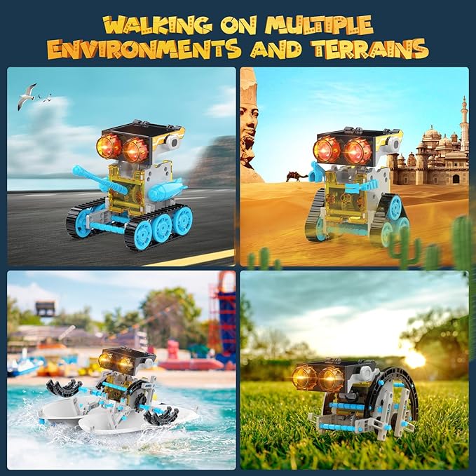 - 2 Power Source Modes-Wesfuner solar robot toys design 2 kinds of power source modes, solar panel and battery on robot head. Teach kids about problem-solving skills and creativity, educational and practical benefits, instilling knowledge, skills, and values that contribute to a greener and more sustainable future. If no sunlight, install a AAA battery (not included) inside the robot head and play indoors