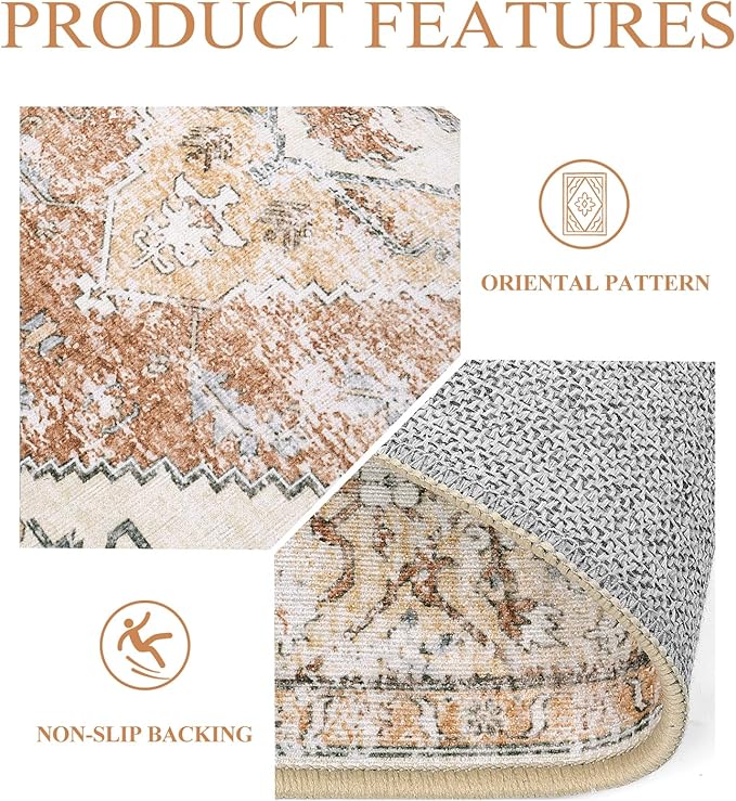 - Oriental Design: The indoor rug is made of comforable chenille material, which is lightweight, soft and stain resistant in daily use. Classic colors with elements of medallion and borders make your room vintage and vibrant