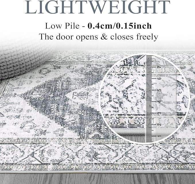 - Functional Lightweight Rug - Lahome ultra-thin rugs are made with everyday use in mind and high-traffic areas. 0.15 inches thickness allows for convenient placement in bedroom, living room and underneath furniture. The door opens and closes freely