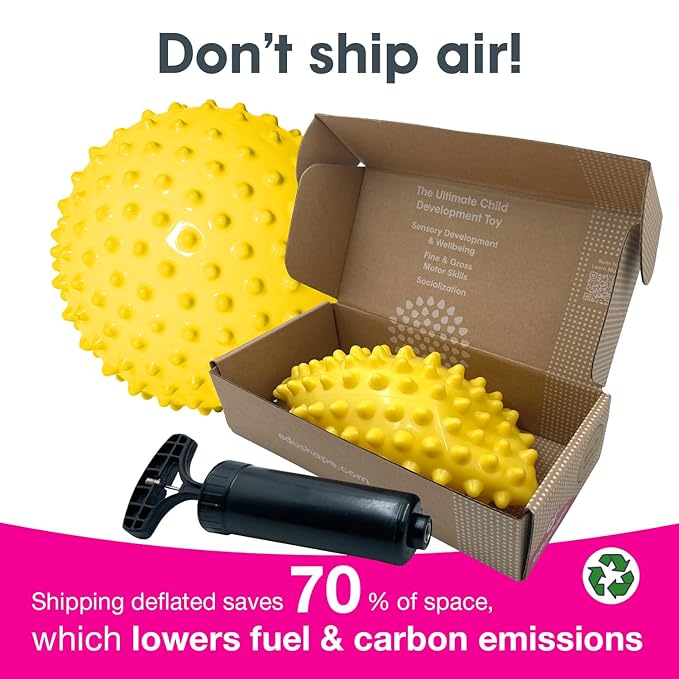 - WHAT'S INSIDE: A set includes one 7" Yellow-Opaque Deflated with Pump sensory ball for toddlers 1-3. Our baby development balls come deflated but can be easily inflated via a built-in valve. Recommended for kids aged 6 months and up!