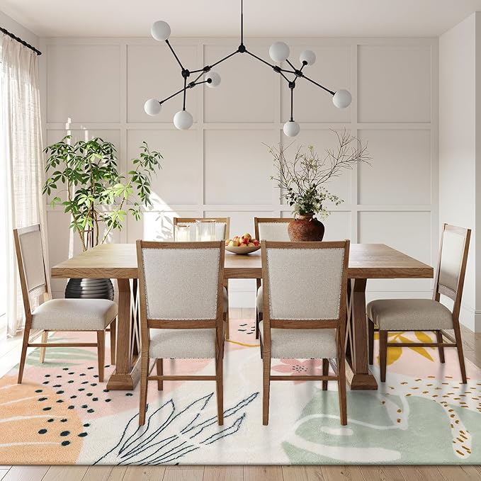 Lahome Pink Rug Machine Washable Area Rugs - 6x9 Non-Slip Large Living Room Rug Lightweight Throw Soft Carpet for Bedroom, Boho Botanical Print Ultra-Thin Indoor Rug for Classroom Nursery Dining Room