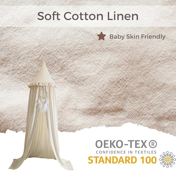 Wonder Space Kids Bed Canopy with Ruffles, Pastel Neutral Color for Boys & Girls, Frilled Cotton Tent Nursery Room Baby Crib Hanging Curtain Mosquito Netting Children Reading Nook Decoration (Ivory)