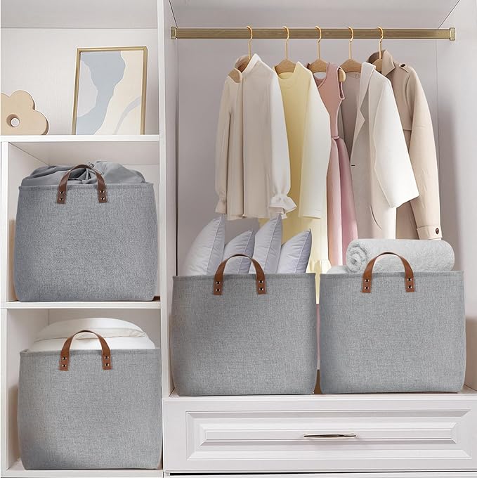 DULLEMELO Large Grey Storage Baskets 70L Oversized Dog Toy Bin Basket, Collapsible 22" X 15" X 13" Extra Large Fabric Baskets for Storage Clothes, Toys, Blankets Organizers (Grey)