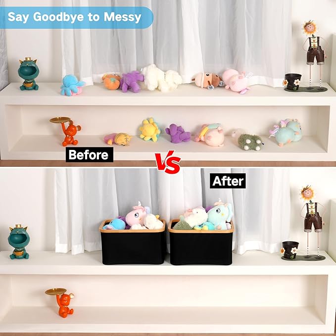 - 【Stylish Appearance】The neutral color and bamboo frame give the fabric storage bins a simple and elegant look. It will look great in the bedroom, bathroom or living room. When you don't know what to give as a gift, it will be a great idea.
