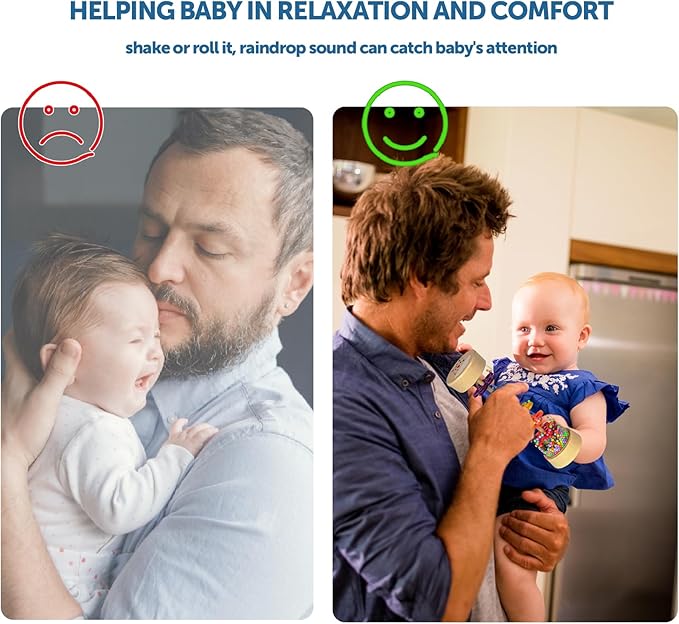 - 【Soothing Raindrop Sounds】: Turn this rain stick over, shake it or roll it around to produce clear and soothing sound of rain sounds. Raindrop sound can capture baby's attention, assisting our baby in relaxation and comfort, especially during moments of anxiety or unease