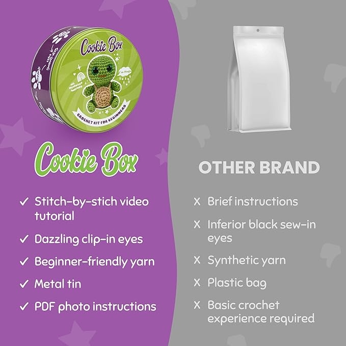 - đ Our Promise to You: The entire Cookie Box team is committed to making crochet truly beginner-friendly, frustration-free, and rewarding. Every kit is designed for the best learning experience, combining high-quality materials, clear guidance, and real support. Thank you for being part of the Cookie Box crochet community!