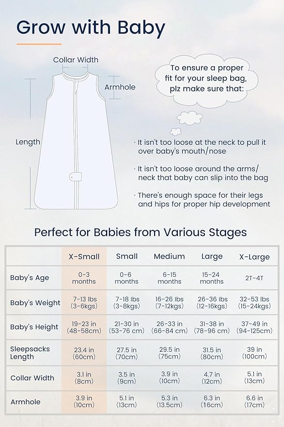 - AMPLE SPACE for COMFORT: Our sleep sack is designed to provide a roomy and secure fit, promoting healthy hip development and allowing for unrestricted movement during sleep. Its clever design prevents the blanket from being kicked off, ensuring your baby remains safe and secure throughout the night. Available in sizes ranging from 0-3,3-6,6-12,12-18,12-24 months, and 2T-4T.Our sleep sack creates a cozy pouch around the legs, granting your little one the freedom to move comfortably.
