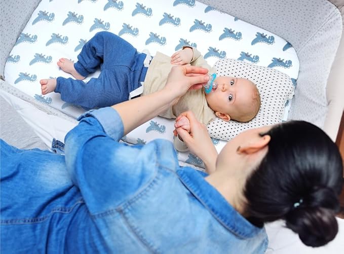 - SURPER SOFT: The material to make from the mini crib sheets has been carefully selected, super soft, elastic and breathable. The elasticity of mini crib sheets will fit the mattress well and the smooth feeling will keep babies cozy and comfortable