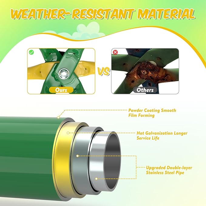 - [Sturdy and Durable] Crafted from rust-resistant, weatherproof galvanized steel, our outdoor climbing dome ensures durability and rust resistance in all weather conditions. The frame, consisting of hot-dip galvanized pipes and 25.5mm thick iron walls, ensures stability and safety