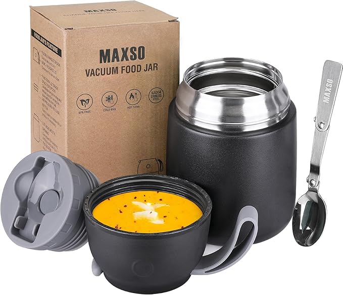 - 【Superior Vacuum Insulation】Keeping your soup hot, it can be an easy thing!!! Durable insulated thermal technology maintains temperatures for longer, interior is constructed entirely of food-grade stainless steel, keeping food hot up to 12 hours or cold for 24. Whether in school or in the office, you can always enjoy hot food and soup during lunch time! It is suitable for babies, toddlers, children, girls, boys, adults and the elderly, perfect for school, office, travel, camping, gym, home.
