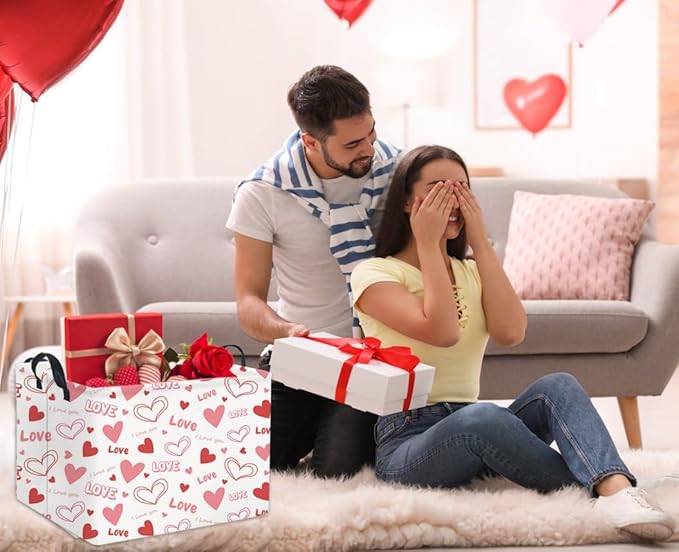 HIYAGON Rectangular Valentines Gift Basket - Pink Love Room Decor