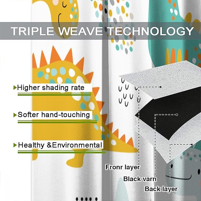 Dinosaur Curtains for Kids Boys Girls Home Decor Childish Cute Dino Animals Print Pattern Rod Pocket Blackout Window Drapes for Nursery Baby Bedroom Playroom W21xL63in 2 Panels