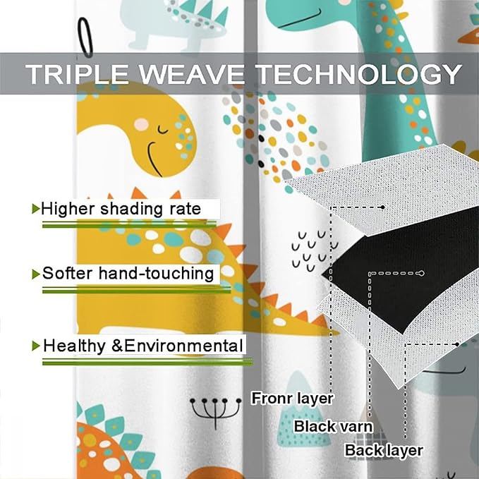 Dinosaur Curtains for Kids Boys Girls Home Decor Childish Cute Dino Animals Print Pattern Rod Pocket Blackout Window Drapes for Nursery Baby Bedroom Playroom W36xL63in 2 Panels